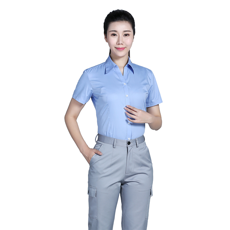 相关全棉蓝色V领短袖衬衫ZL004推荐