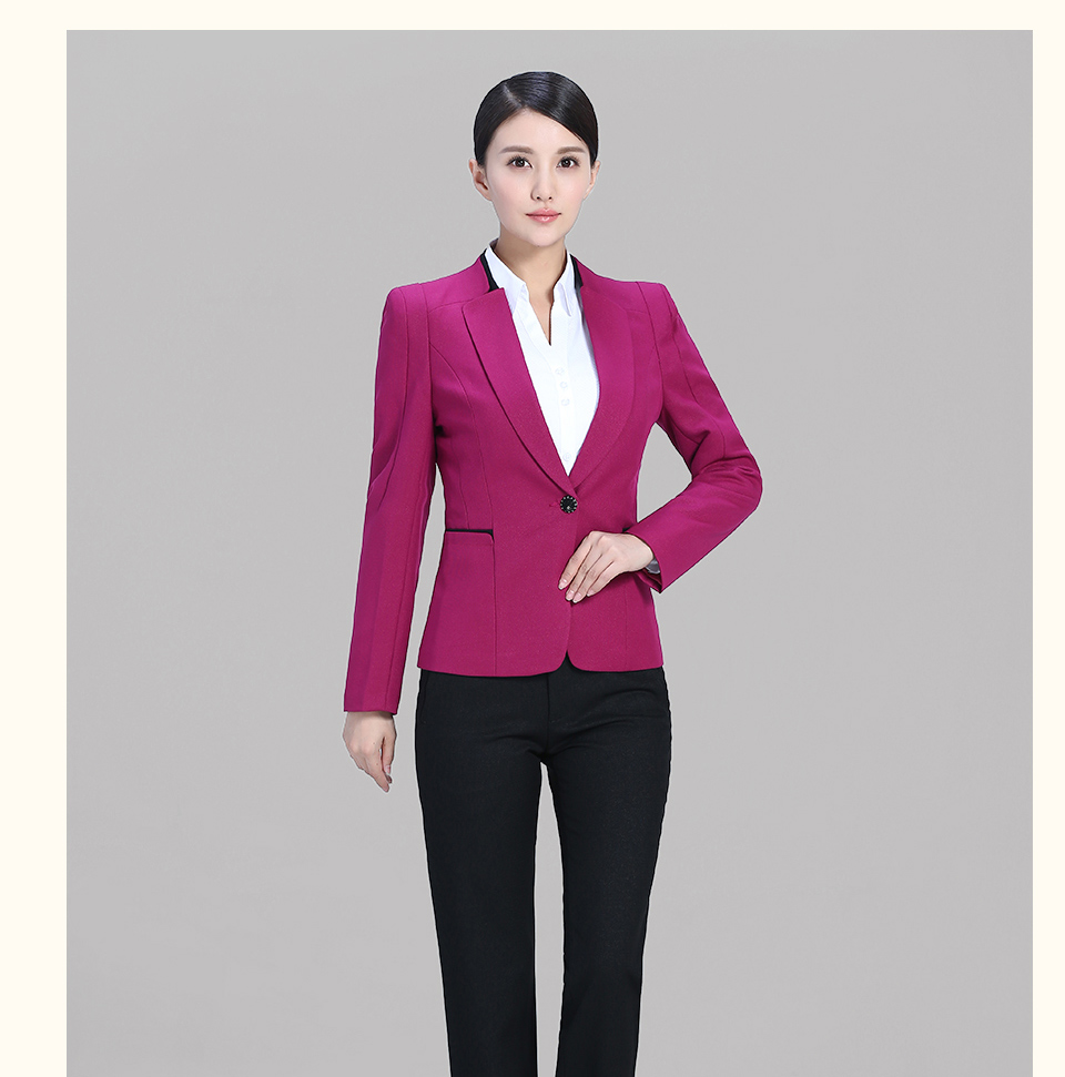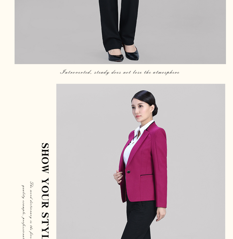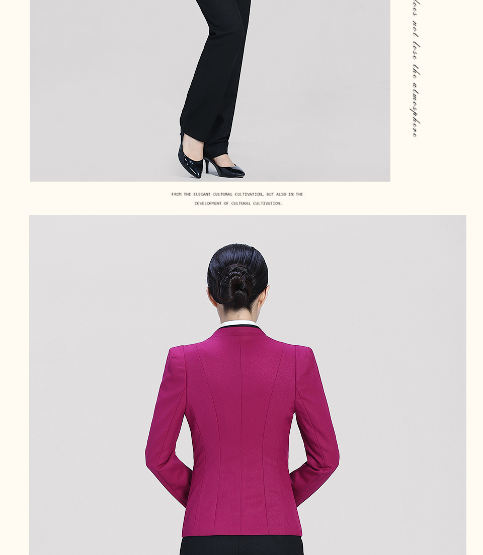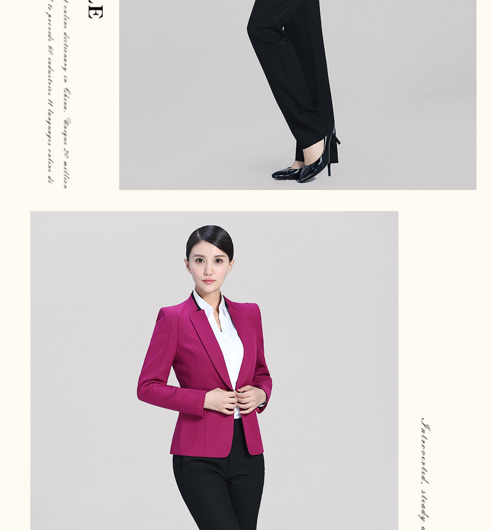 相关改良版翻领玫红色时尚职业套装FX11推荐