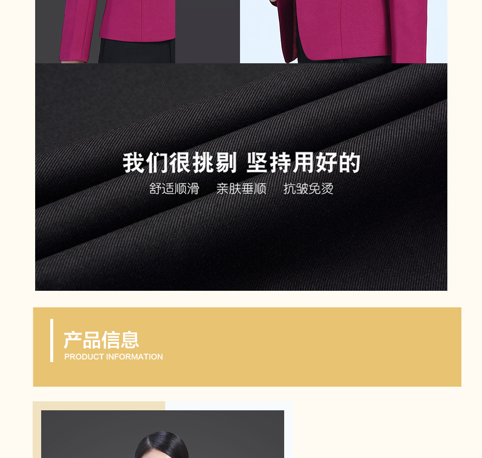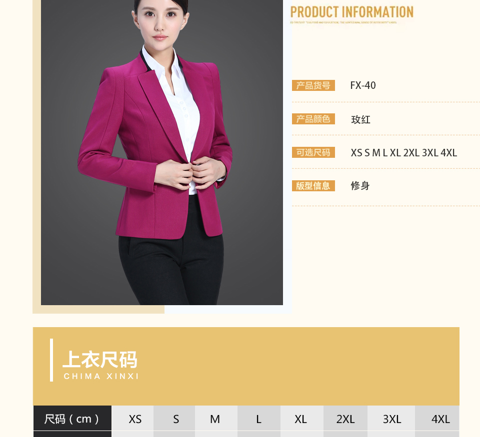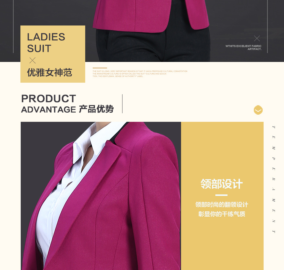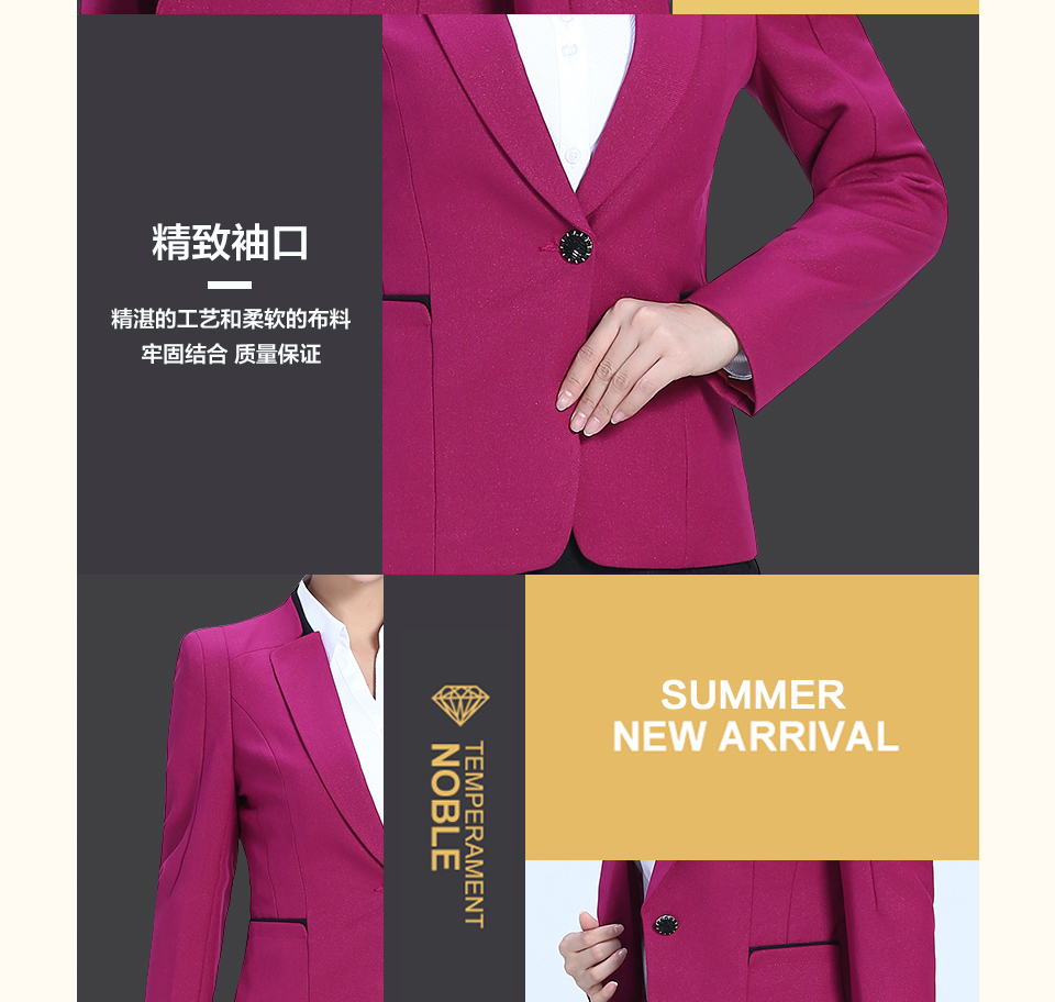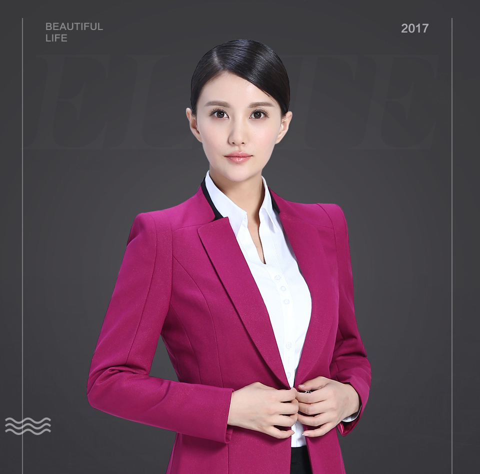 相关改良版翻领玫红色时尚职业套装FX11推荐