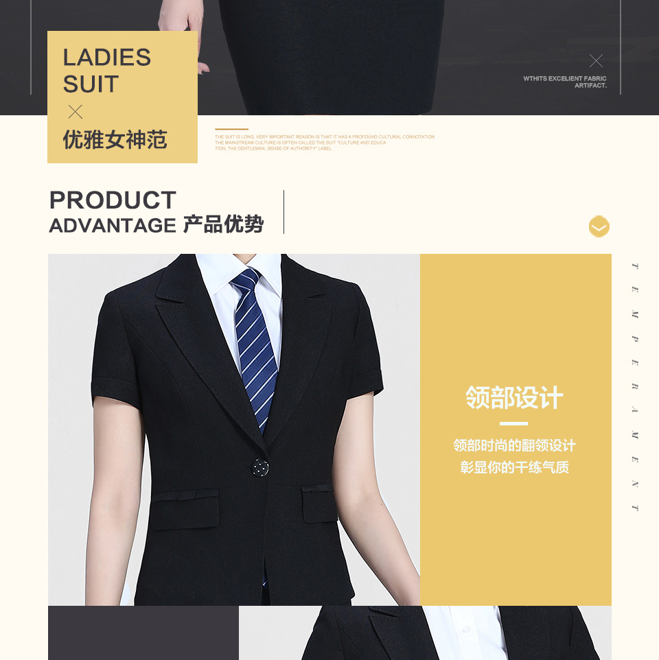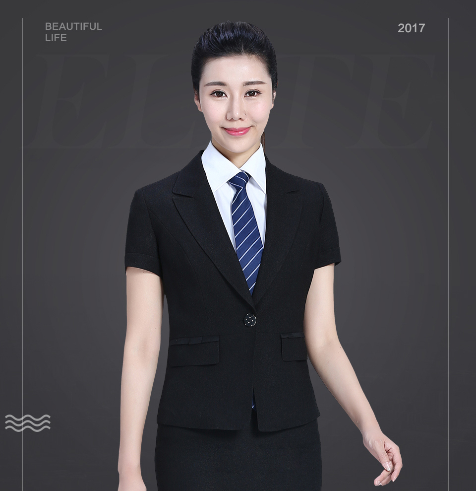 相关平驳领短袖修身职业套装FX06推荐