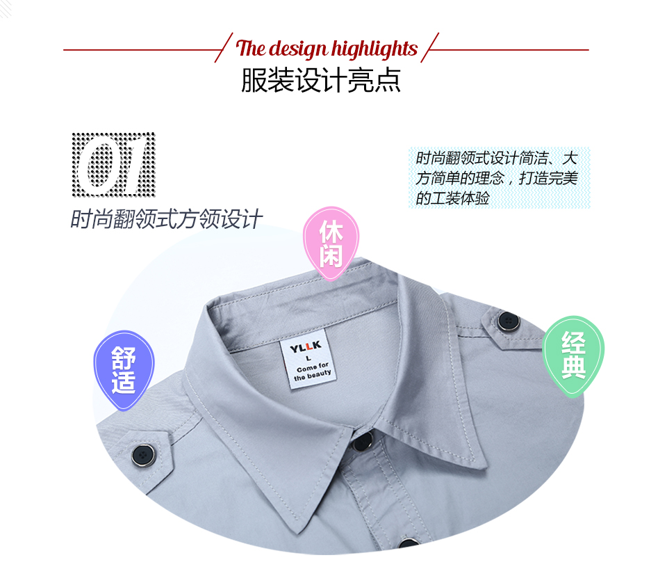 相关休闲合体夏季涤棉细斜短袖工作服FY608推荐