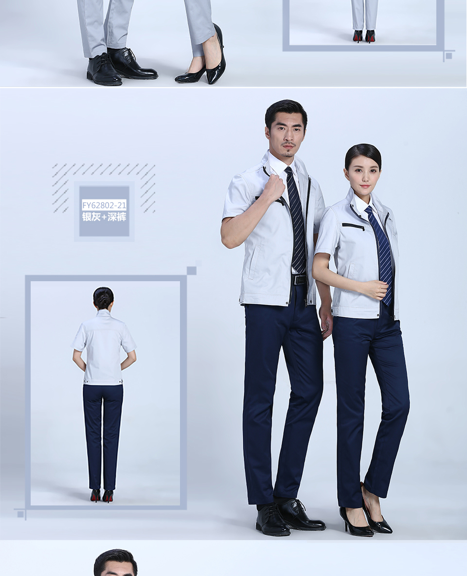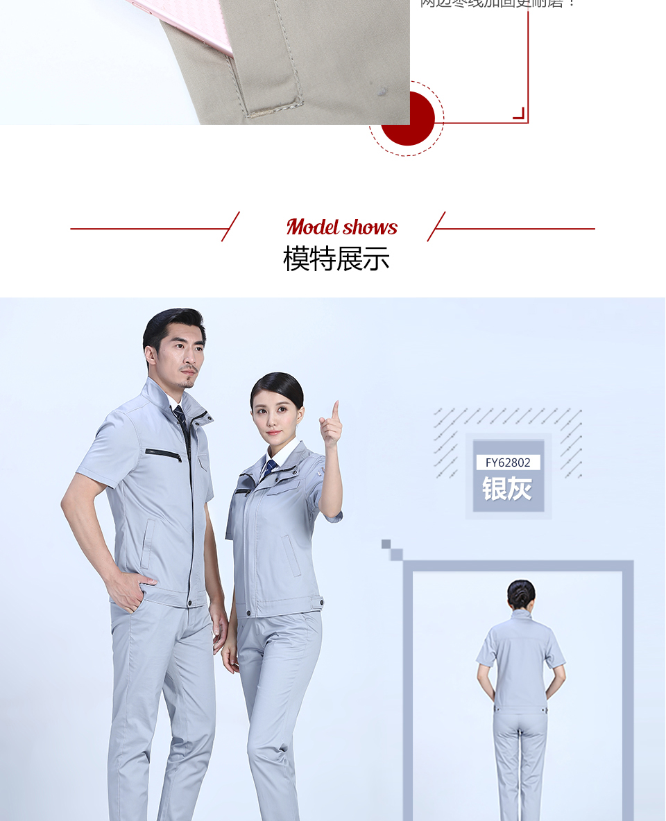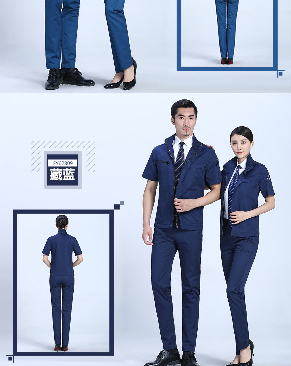 相关创意拉链款夏季涤棉细斜短袖工作服FY28推荐