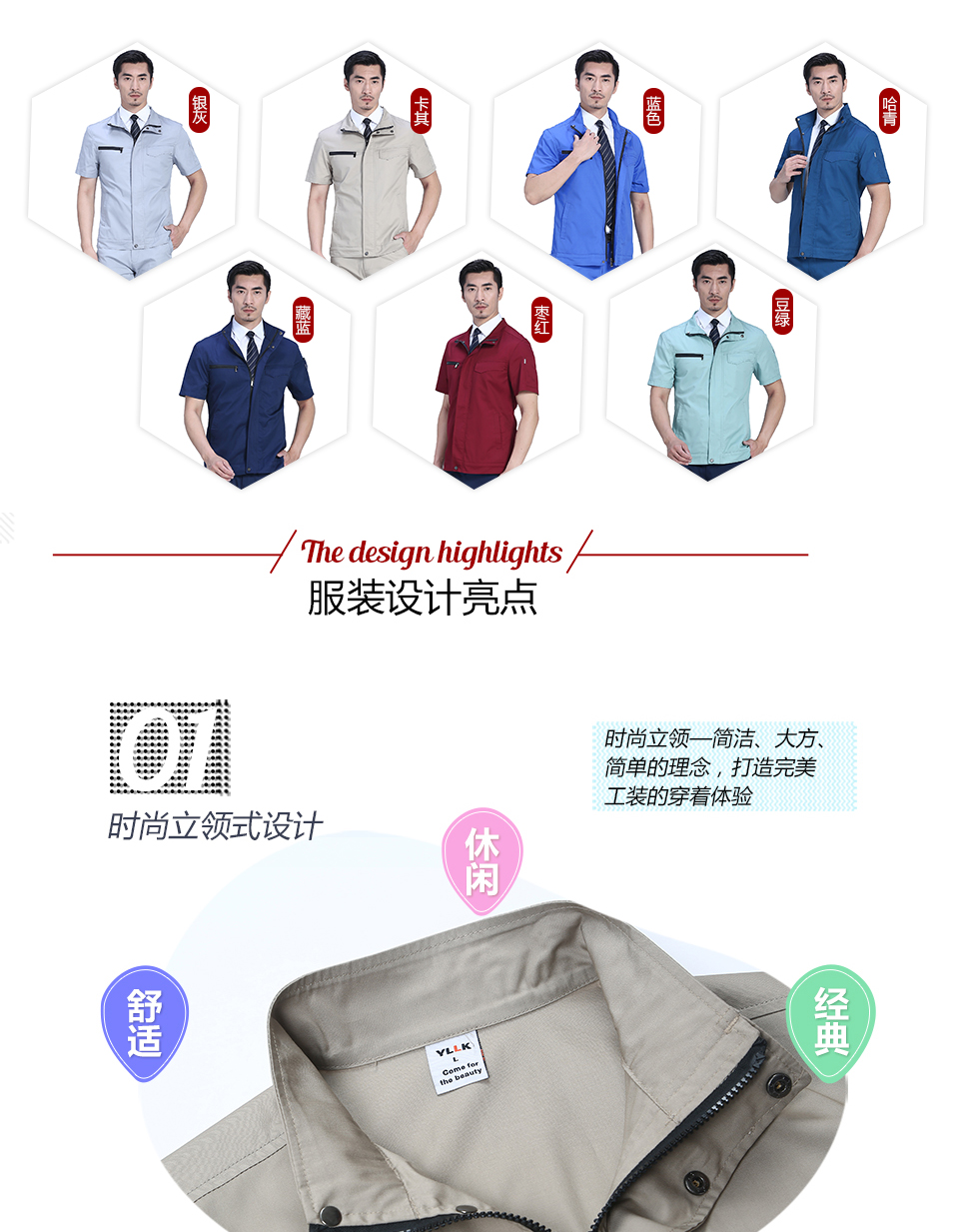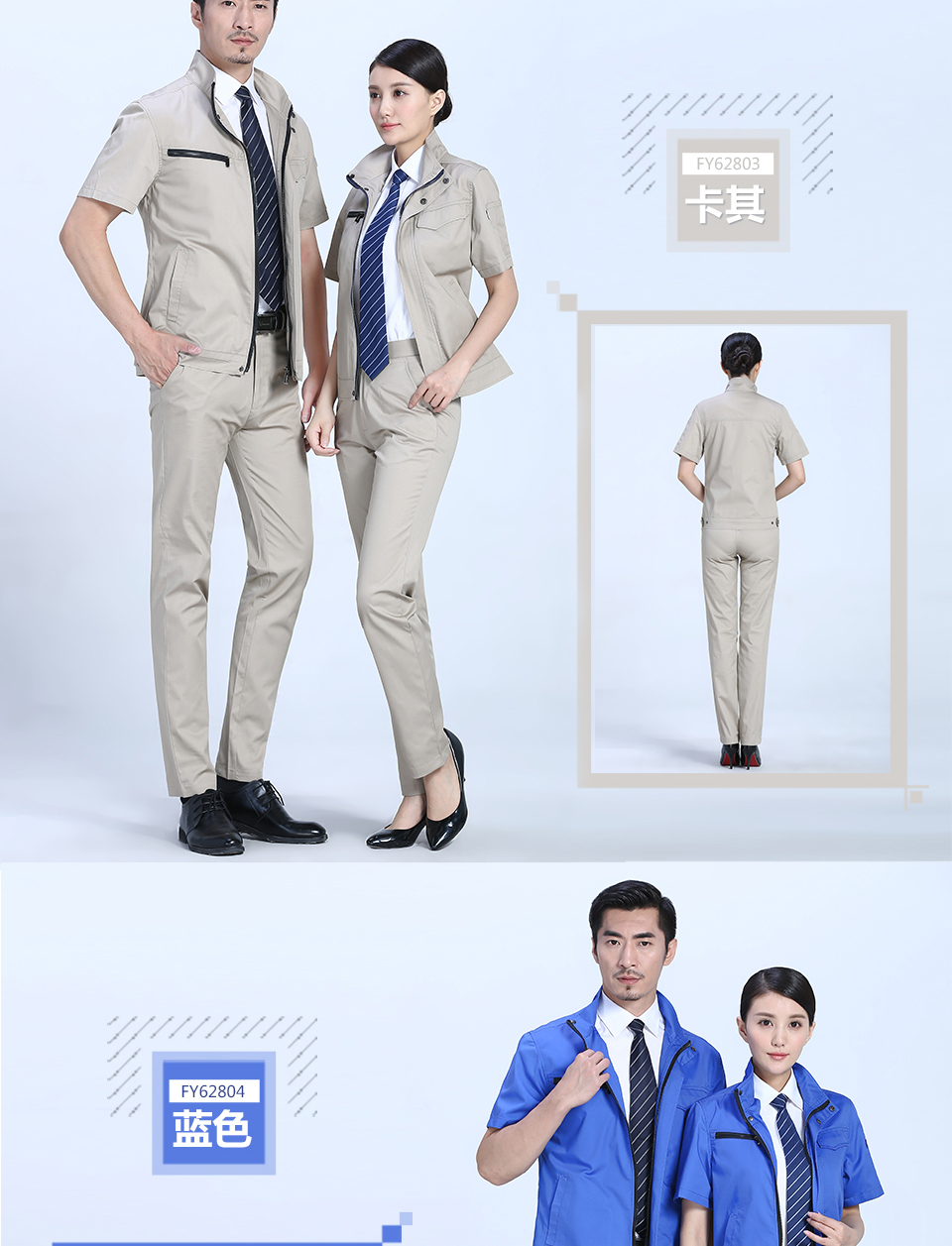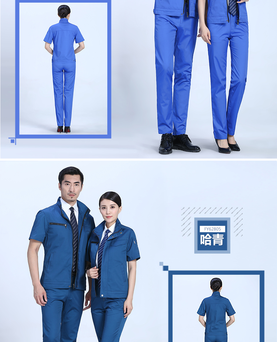相关创意拉链款夏季涤棉细斜短袖工作服FY28推荐