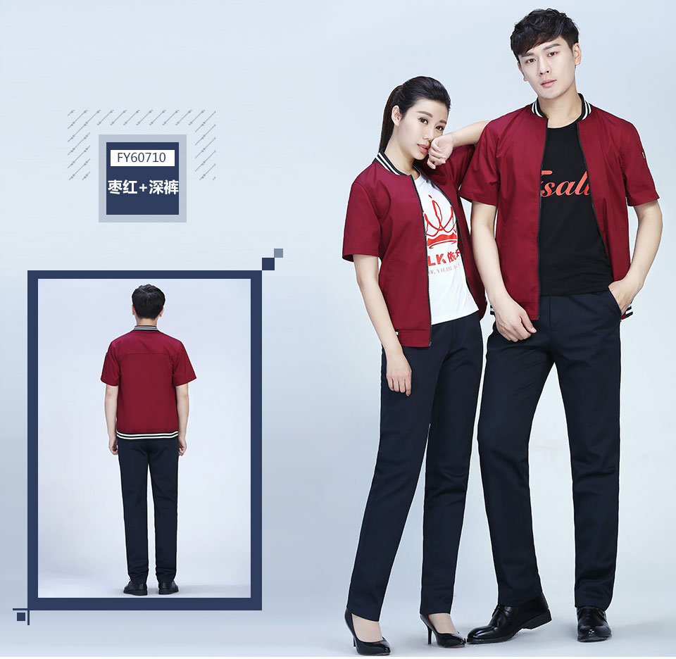 相关针织条纹领拉链休闲时尚款短袖工作服FY07推荐